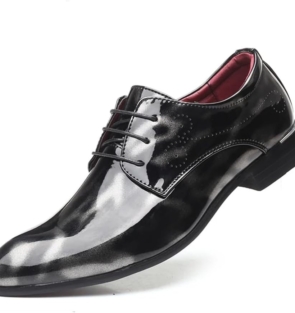 Men Fashion Dress Business Shoe Pointed Toe Floral Patent Leather Lace Up Oxford Black Brown Red Grey